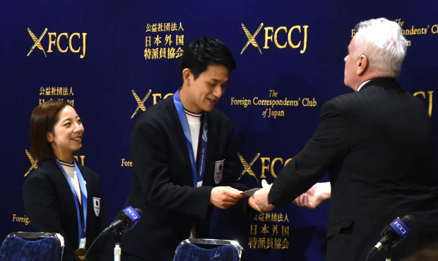 「りくりゅう」FCCJ に2人で優雅に着地、楽しい記者会見を実施!