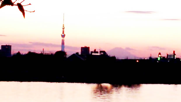 A shot taken from the east bank of Edo River, with Sky Tree and further beyond, Mt. Fuji. Taken in 2014 by HM.