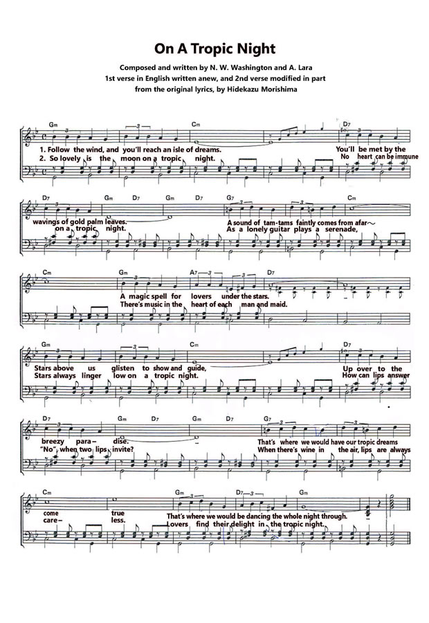 This month’s song is “On A Tropic Night”(the original Japanese title “Nangokuno-yoru”)