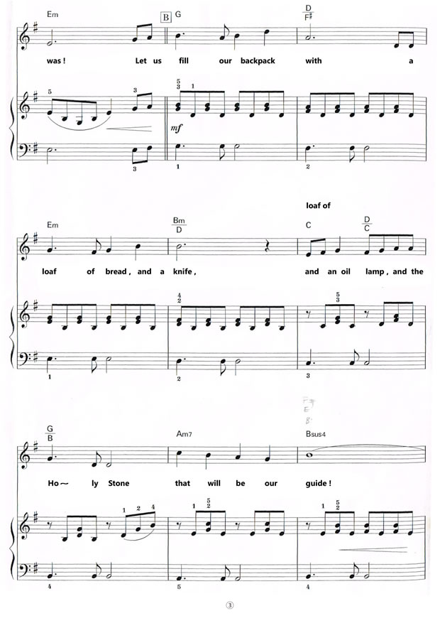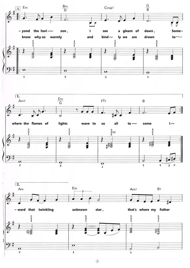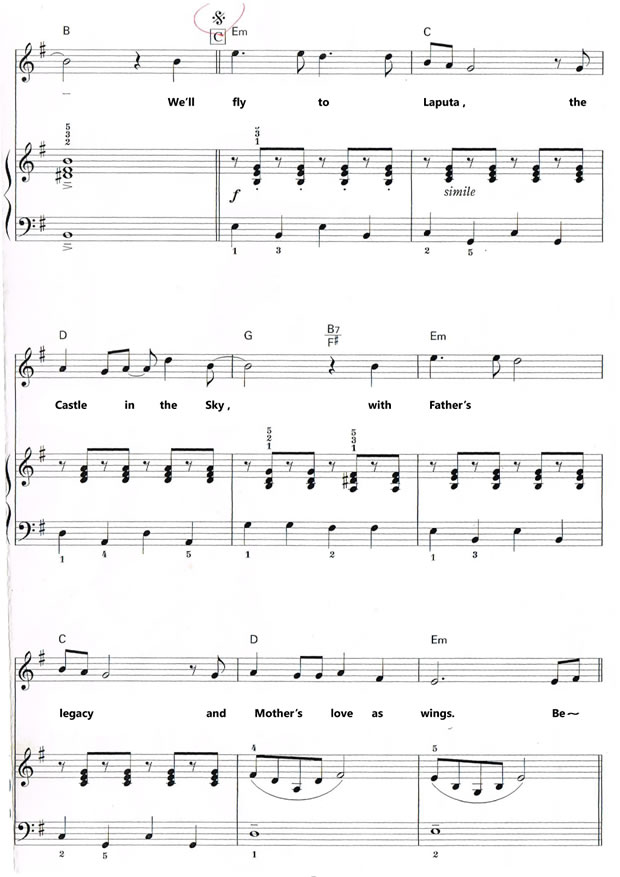 This month’s song is titled “Beyond The Horizon”, an English version of the theme song for the famous animation film “Tenkuu-no Shiro Laputa” produced by Ghibli Studio. I saw the film a number of times and enjoyed every time. The film carries fantasies and romances viewers adore, and so does the theme song, “Kimi-wo Nosete”. “Kimi-wo Nosete” sounds to literally mean “Riding along with you” (on something). From the story described in the film, it may well indicate the hero boy riding along with the heroine girl on a spaceship in quest of Laputa, the Castle in the Sky. The girl is the princess fallen from Laputa and the boy saved her on the ground, and Laputa is the legendary space station of old where the boy’s father once travelled to, and did not quite accomplish his mission and perished with a will left back home to the son. The boy’s mother seemed to encourage him to pursue the same mission, and reach Laputa. The success of his mission will also mean that he will be able to bring the princess back to her home kingdom. They do reach Laputa with the help of the magical Holy Stone which the girl had worn as the symbol of the princess, but what they find there in the sky is a heavenly body where the evils rampage and the destruction prevails after the kingdom crumbled. Can the boy and the princess make good Laputa back to what it was, the Castle in the Sky where peace and humanity ruled and the cohabitation of humans and robotics prevailed? The music of the song is beautiful, and the film and the song became very popular in Japan as well as in world over, and I hope that overseas fans of this charming anime film and the song will enjoy singing the song, or hearing their sons and daughters sing it!