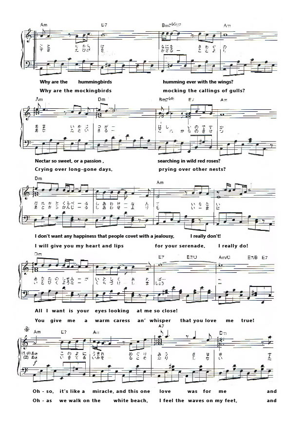 This month, I wish to send to you the first piece of Japanese song of which lyrics I made the English translation (atmospheric, as I call). My encounter with this song, “Aino Mamade” (“Love As Is” in the original meaning), dates back to around year 2008 when I came across this song and was struck in the heart as I listened to it. I may compare the singer of this song, Junko Akimoto, to, say, Julie London, in that Ms. Akimoto’s voice is mostly alto like that of Ms. London, and that both singers offer dreamy and yet appealing voice quality. The song became a huge hit and Ms. Akimoto made it to that famous nation-wide TV song show aired live on NHK on the new year’s eve. Actually, even before the song made it to that nation-wide show, I had been strongly attracted by the song, and tried to invite Ms. Akimoto to sing in Sasebo City, Nagasaki Pref., and she actually did make it there. I offered a post-stage dinner party at Sasebo Heavy Industries’ guest house. (I had been involved in the management of the company there.)